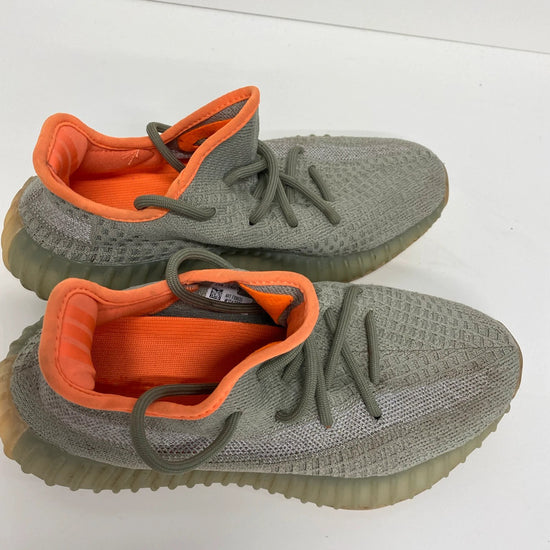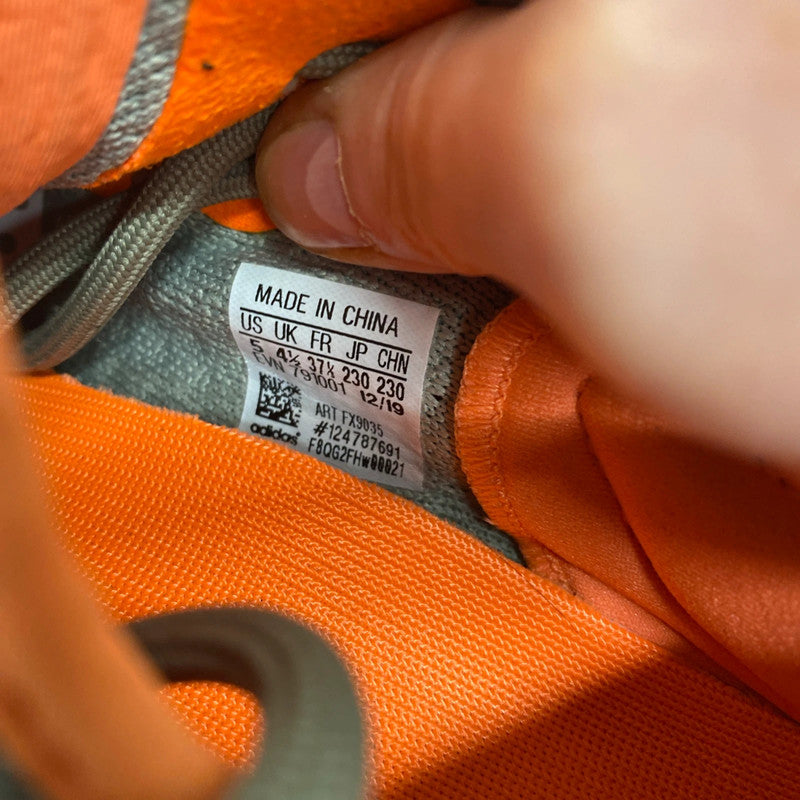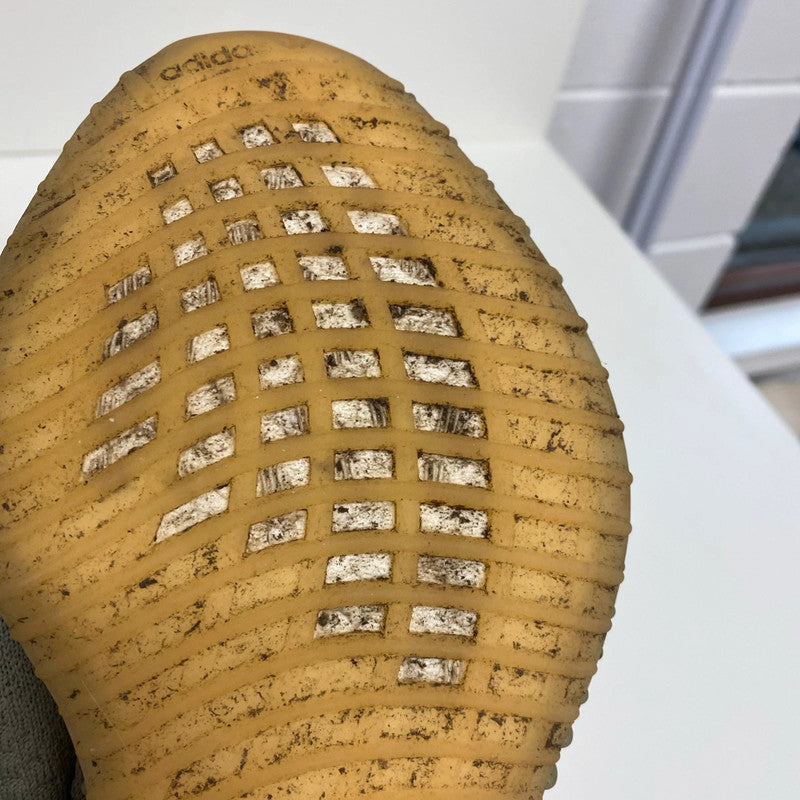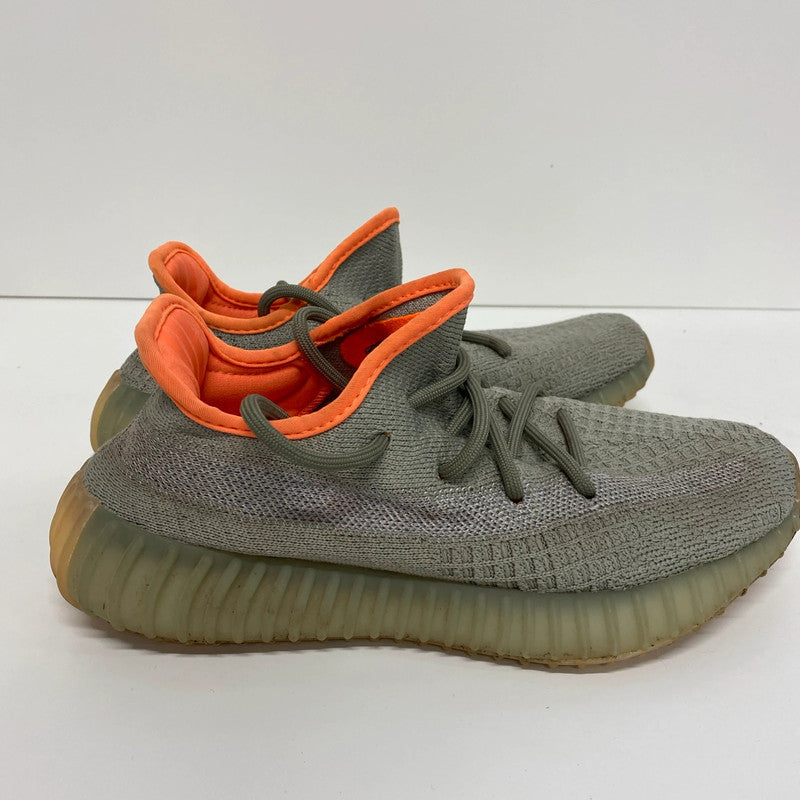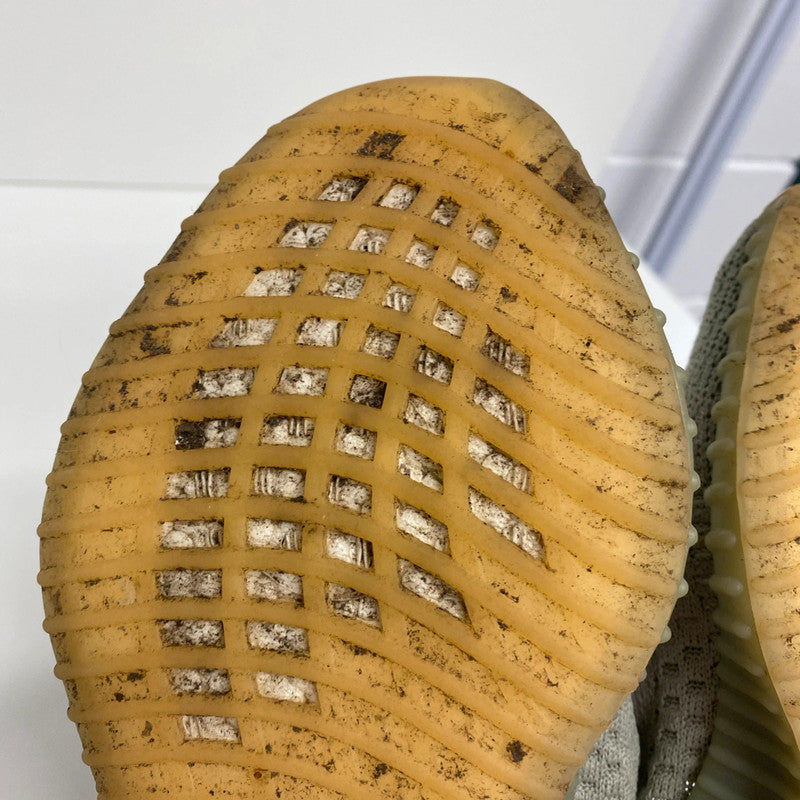 The adidas Yeezy Boost 350 V2 in Green Grey is a unisex trainer in a UK size 4.5. Made by adidas as part of their Bones product line, these sneakers are a stylish addition to any wardrobe. The grey fabric of the shoe is complemented by the green and grey tones, creating a unique and fashionable look. The Yeezy Boost 350 V2 model is known for its comfort and style, making it a popular choice for sneaker enthusiasts.