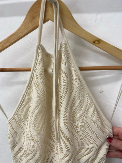 Fabulous boho crochet rag mini dress Ibiza UkS LT272, brand: Bershka, condition: Good, size: 4 / S