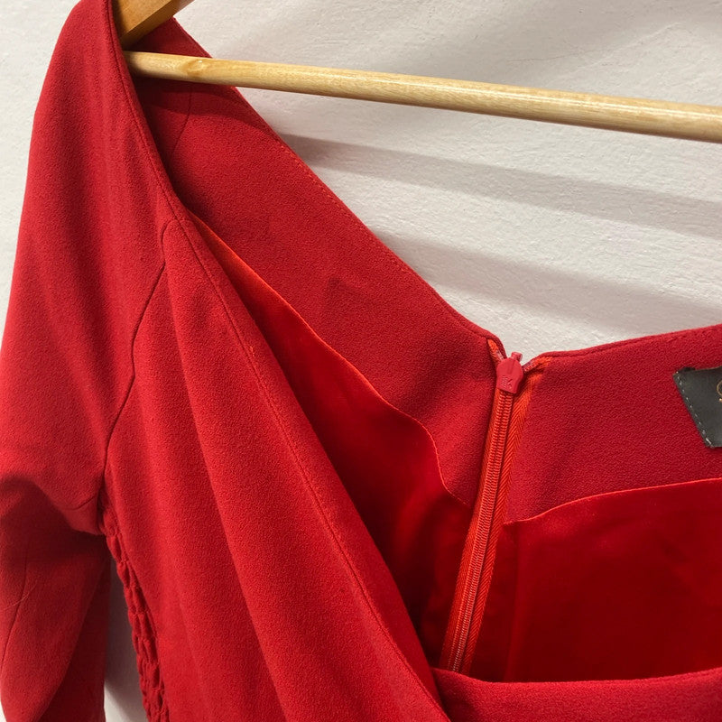 This Bombshell of London Katya Wildman Classic Red Confidence Dress in UK size 12 is a stunning knee-length pencil dress designed for women. The dress exudes a classic and confident style with its bold red color and tailored silhouette. Perfect for various occasions, this dress by Bombshell Katya Wildman is a timeless piece that is sure to make a statement.