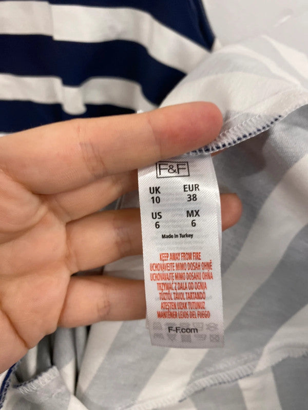 Fabulous F&F Navy Nautical Stripe Belted Mini Dress UK10 LM005, brand: F&F, condition: New with tags, size: 6 / S