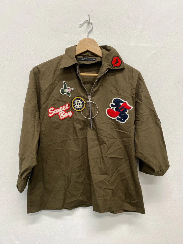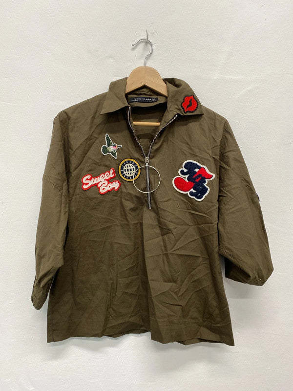 Fabulous Khaki fun comic lightweight top by Zara UkM KB001, brand: Zara, condition: Good, size: 6 / S