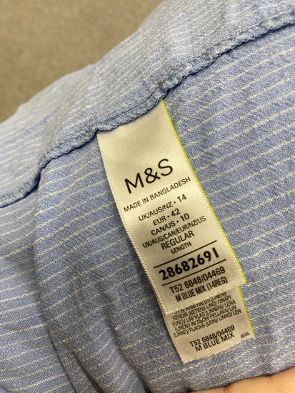 Fabulous Marks & Spencer blue striped linen midi dress UK 14 AT002, brand: Marks & Spencer, condition: Good, size: 10 / M