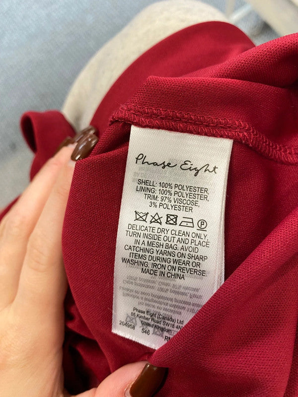 Fabulous Phase Eight fringe Kacy Midi Dress UK 14 Burgundy EP468, brand: Phase Eight, condition: Good, size: 10 / M