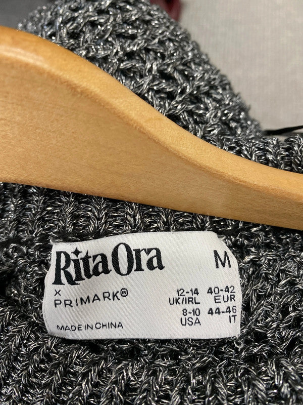 Fab chain knit crochet jumper Uk12/14 metallic details