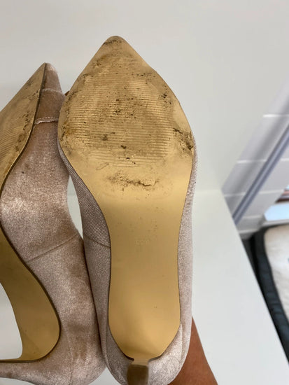 Amazing blush heels one mark on the left shoe as shown. Elongate the heels…