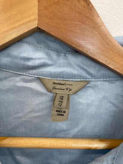 Fabulous River Island Powder Blue Boho Lace Accent Blouse UK16 AB024, brand: River Island, condition: Very good, size: 12 / L