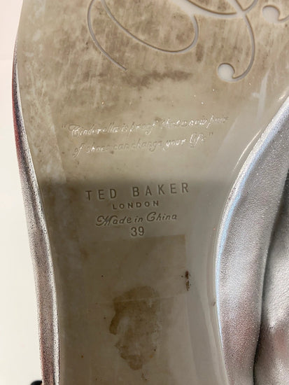 Fabulous Ted Baker Silver Bow Accent Coquette Ballet Flats UK6 MW001