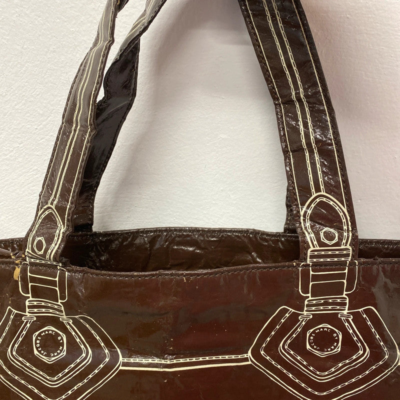 This is a vintage Marc Jacobs shopping bag in brown canvas. It falls under the women's bags and handbags category. With a classic tote style, this Marc By Marc Jacobs bag offers a spacious interior for carrying everyday essentials. The exterior material is canvas, making it durable and practical for daily use. Perfect for adding a touch of designer flair to any outfit, this brown shopping bag is a stylish and versatile accessory for women.