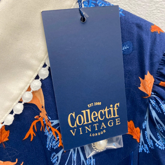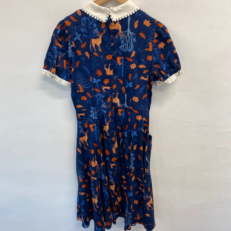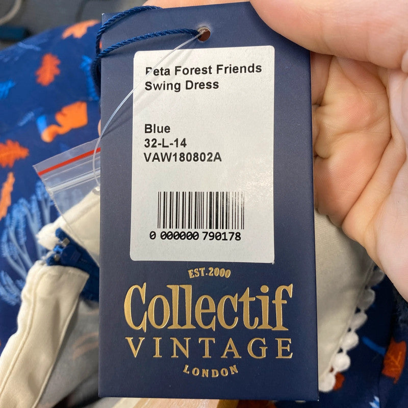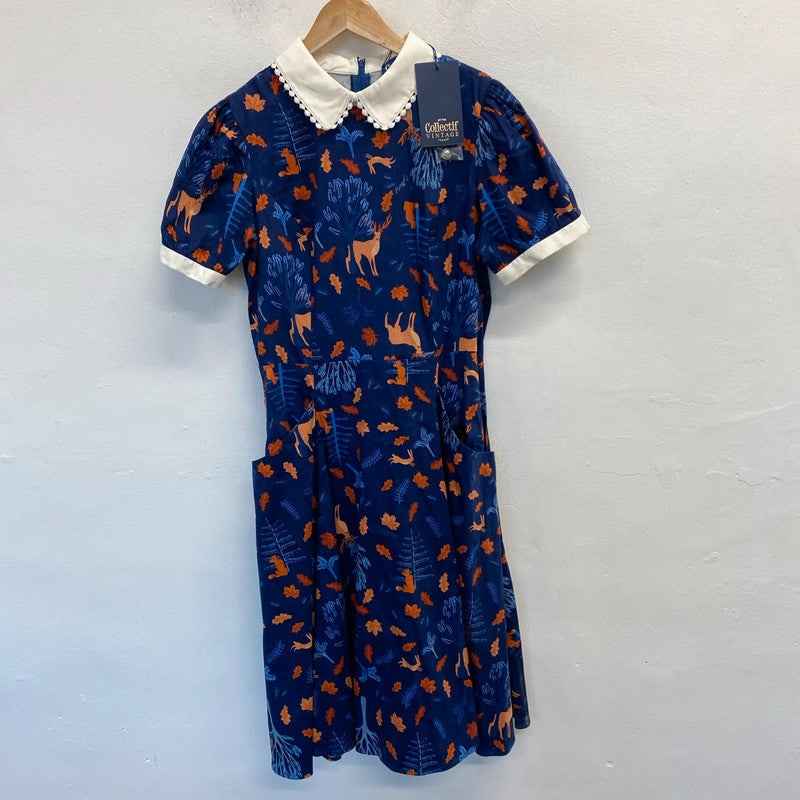 This vintage-inspired Collectif dress in size 14 features a charming Woodland theme with Bunny characters, making it perfect for autumn. The knee-length Fit & Flare style, adorned with Forest Friends print in blue hues, exudes a retro vibe that is both feminine and whimsical. The brand's attention to detail and quality is evident in this BNWT (Brand New With Tags) piece, ideal for women looking to add a touch of woodland charm to their wardrobe.