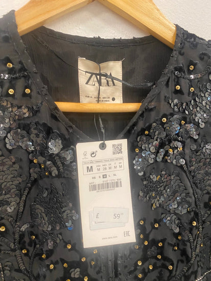 Fabulous Zara sequin open top jacket UkM Black Semi sheer KB474, brand: Zara Woman, condition: New with tags, size: 6 / S