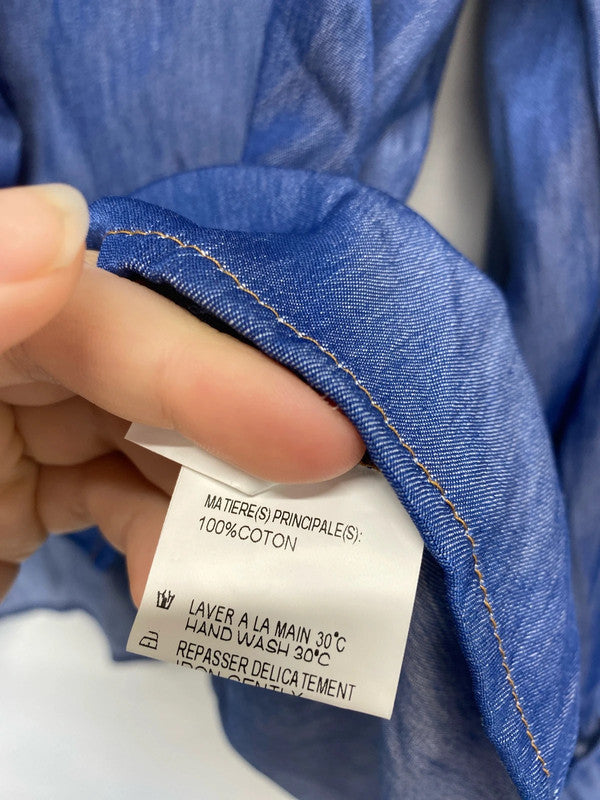 Feelhoo Elegant Blue Shimmer Ruffle Blouse Size L. A gorgeous blouse with romantic boho and coquette vibes.