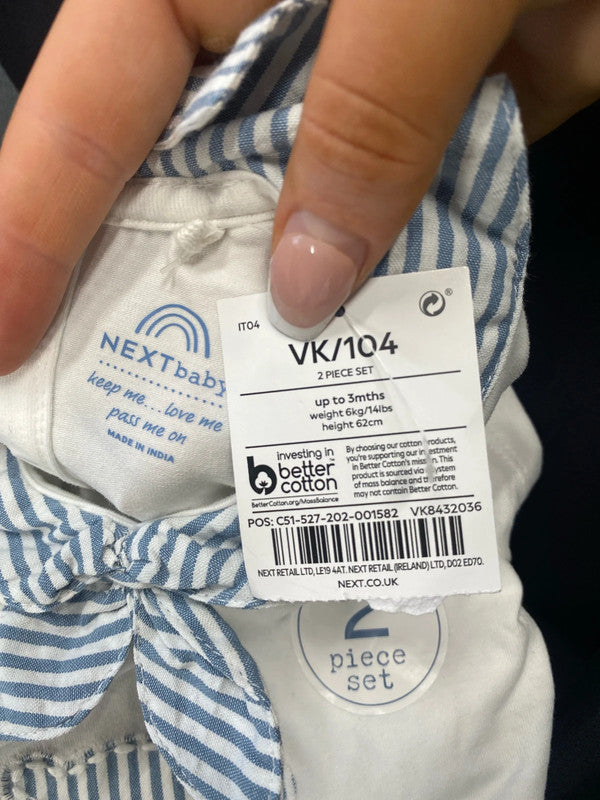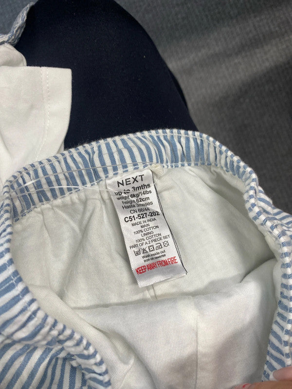 Next Two piece puppy dog dungarees with matching white and blue striped top