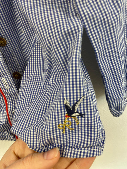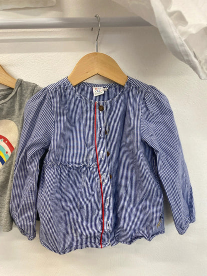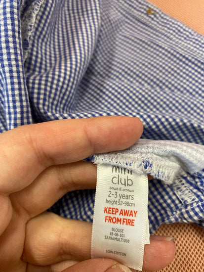 Mini Club blue gingham top 2-3 y. Faint marks on front, see photos.