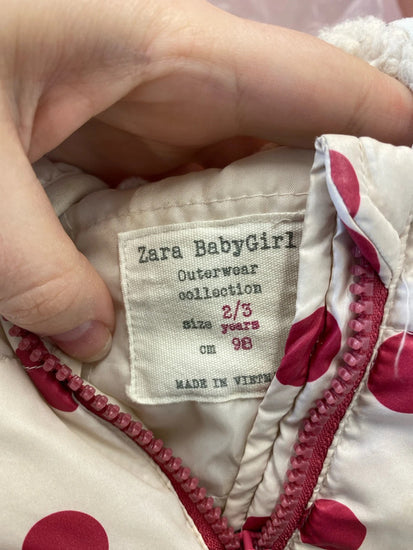 Zara BabyGirl beige & pink polkadot gilet 2-3 y. Has some marks on fabric, see photos.