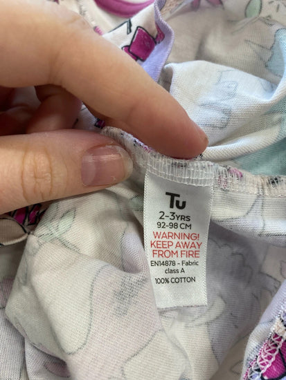 TU pink dinosaur pyjamas 2-3. Top has mark on front