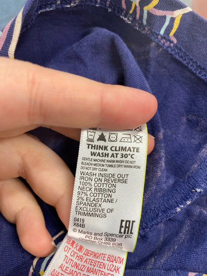 TU grey unicorn pyjama top 2-3. Top is slightly worn and has some marks on it