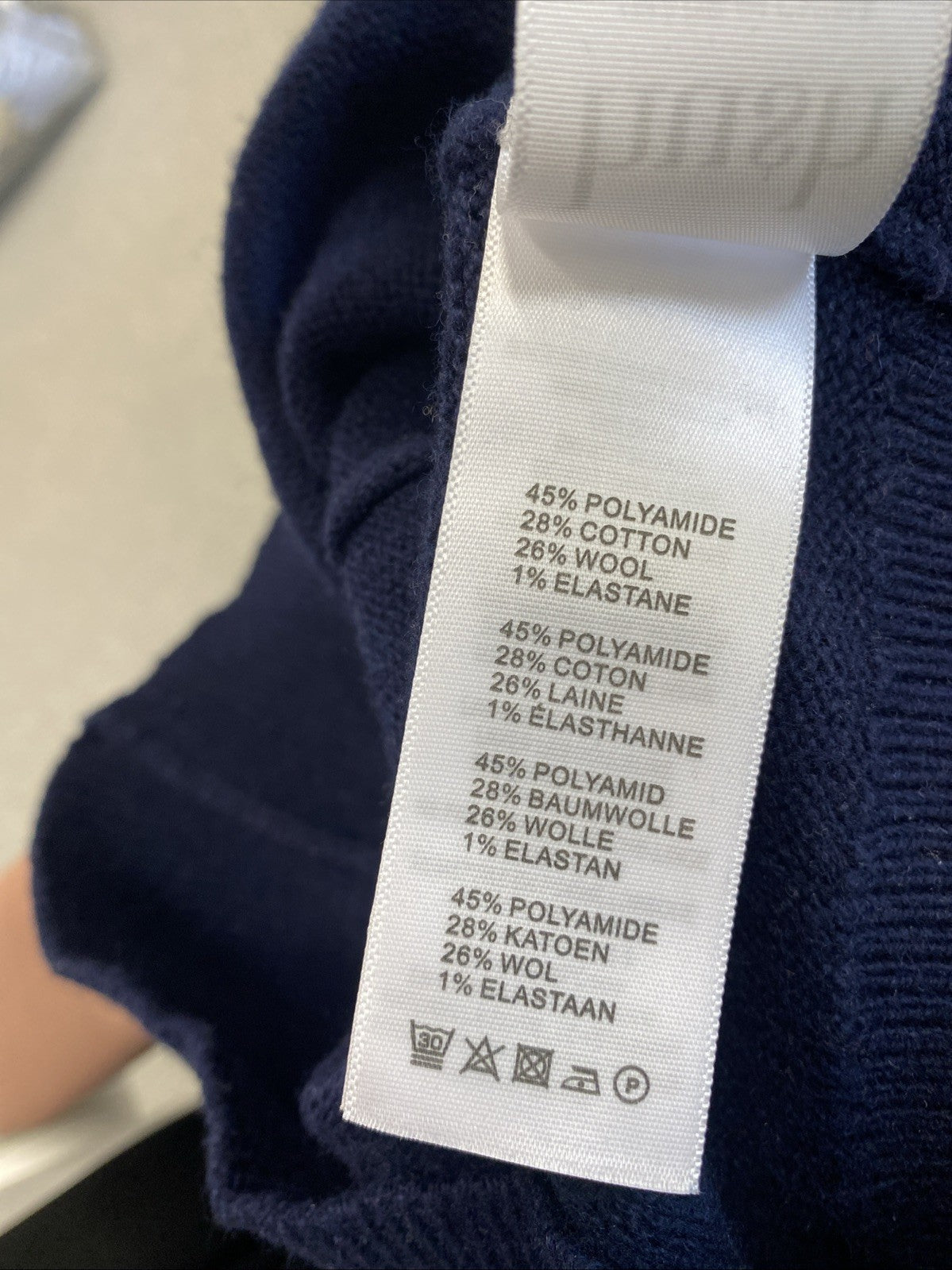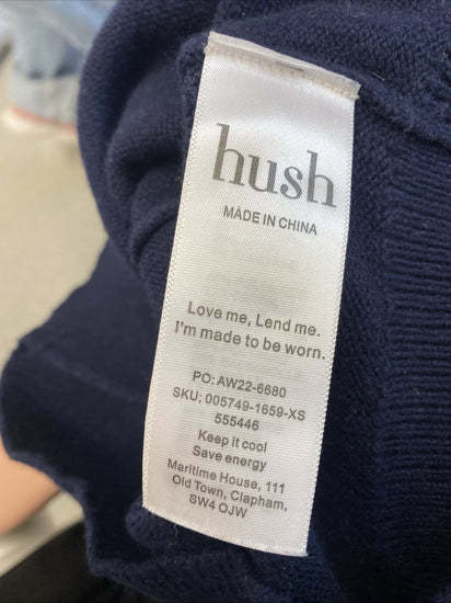 Embrace the cooler seasons with the Hush Midnight Navy Blue Bridie Jumper, a delightful addition to your wardrobe. This pullover is crafted from a cosy blend of cotton, polyamide, elastane, and wool, ensuring both warmth and comfort. Its chevron pattern adds a touch of elegance, while the classic crew neck design keeps it versatile for any occasion.