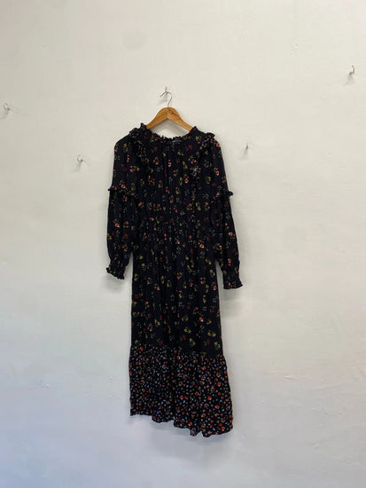 Gorgeous Marks & Spencer black floral midaxi smock dress UK 16 EP468, brand: Marks & Spencer, condition: Good, size: 12 / L