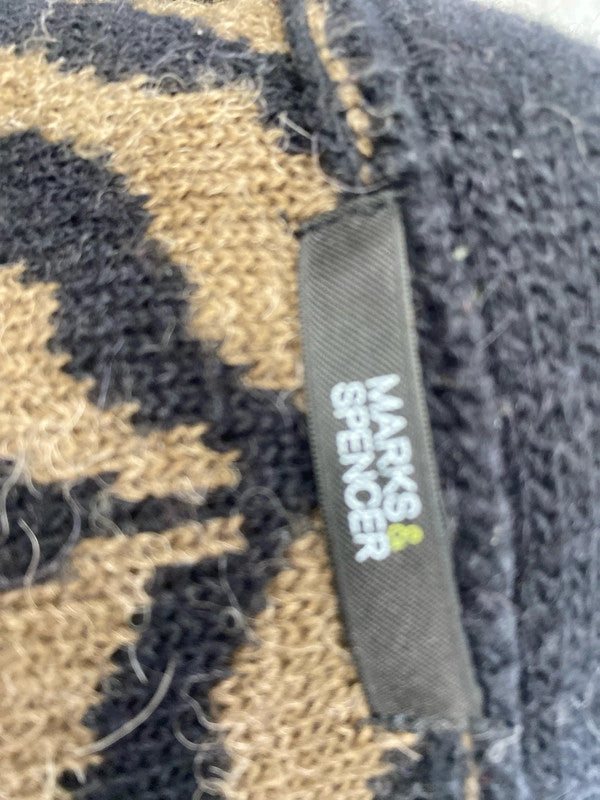 Gorgeous Marks & Spencer brown black zebra knit cardigan UK 14 AT002, brand: Marks & Spencer, condition: Good, size: 10 / M