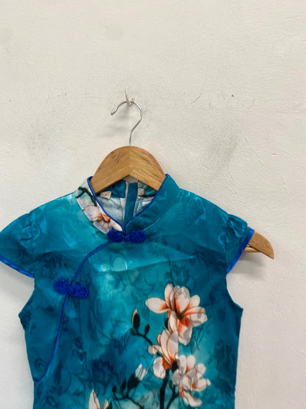 Gorgeous Oriental dress Cheongsam / Qipao UK XL Blue Floral NR002, brand: cheongsam, condition: Good, size: 10 / M