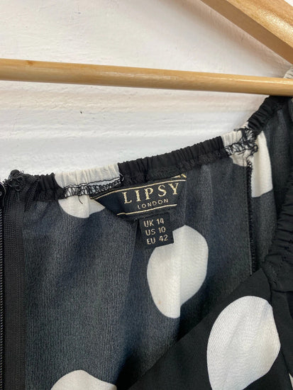 Lipsy London Stylish Black & White Polka Dot Midi Dress UK 14. A gorgeous and effortlessly elegant dress that’s perfect for many a formal event!