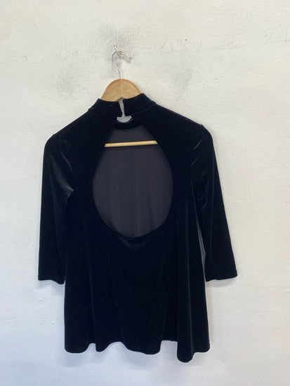 Lovely kimchi blue urban outfitters black velvet look open back mini dress UK XS AE001