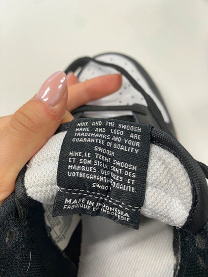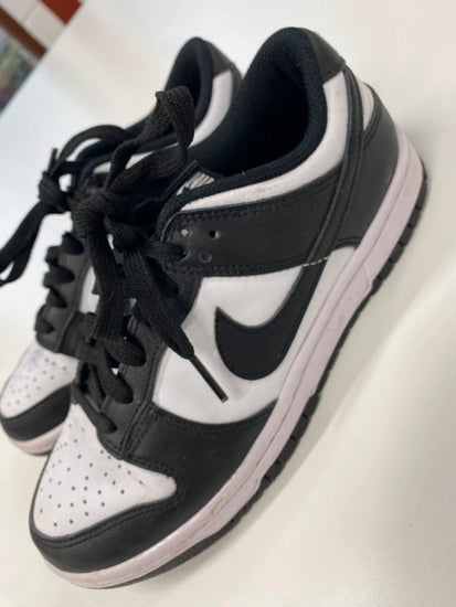 This product is a pair of Nike Dunk Low trainers in a UK size 4 for women. The shoes feature a stylish black and white panda design, adding a unique touch to the classic Nike Dunk Low model. Perfect for casual wear or sports activities, these trainers combine comfort and style with the renowned quality of the Nike brand. Designed specifically for women, these Nike Dunk Low trainers are a trendy and versatile addition to any shoe collection.