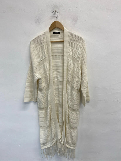 Lovely reserved yfl crochet white longline Cardigan UK M JB001
