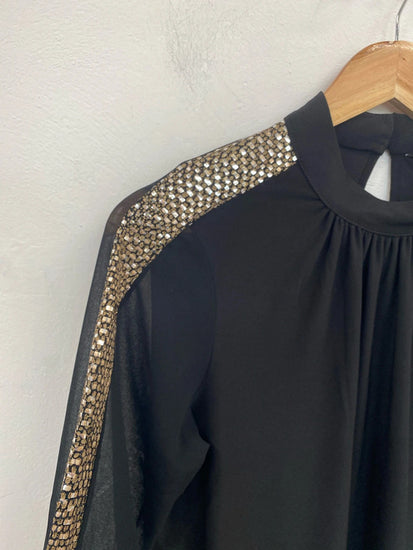 M&Co Glitzy Black & Gold Accent Blouse UK 10. A fabulous top thats perfect for a cocktail party or special event! Inside labels have been removed.