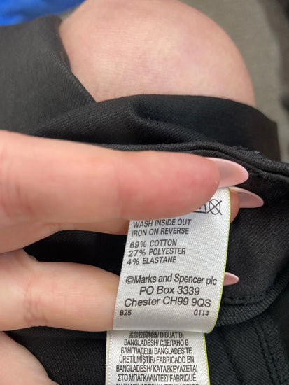M&S Chic Black Wetlook Ankle Grazer Jeans UK 12. Simple yet stylish, a fab pair of jeans to add to your wardrobe staples! Front pockets are faux pockets.