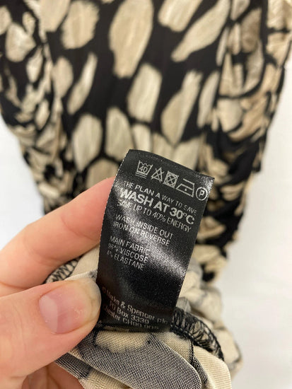 M&S Elegant Black & Beige Ruched Midi Dress UK 12. A fabulous dress thats effortlessly stylish and perfect for a cocktail party!