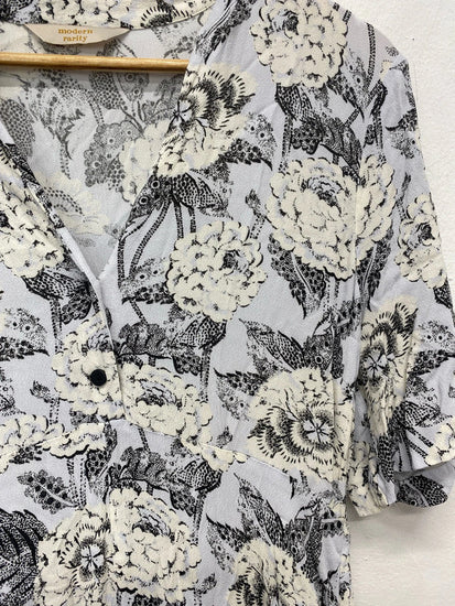 Modern Rarity Elegant Pale Blue Floral Pattern Asymmetric Midi Dress Size M. This is a gorgeous dress for an elevated casual look, perfect for an afternoon tea with the girls! Has pockets! Approximate measurements: