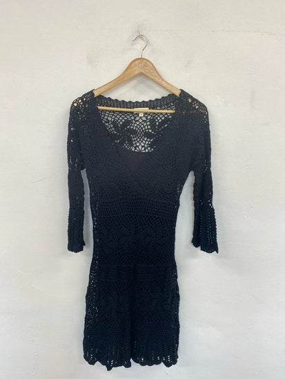 Monsoon Chic Black Crochet Layered Dress With Slip Size S. A gorgeous little dress that would be the perfect addition to your holiday looks!