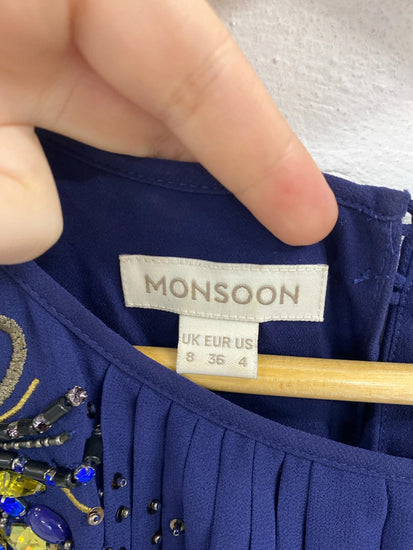 Monsoon Fabulous Navy Beaded Mini Dress UK 8. You’re sure right dazzle in this lovely garment! Perfect for many a formal event.
