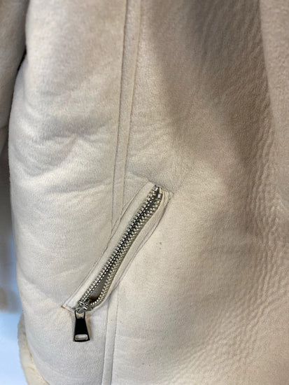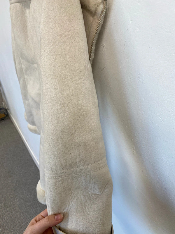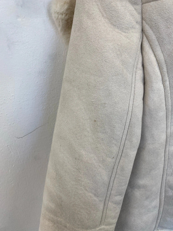 Next Fabulous Cream Faux Fur & Faux Leather Jacket UK 10. Make a statement with this gorgeous Y2K coat. Please note there are marks on the jacket, see photos.