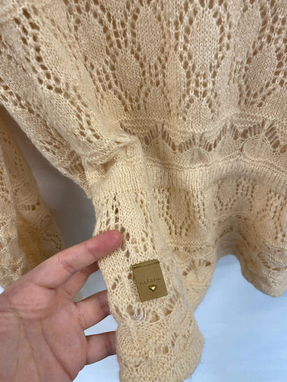 NKN Nekane Gorgeous Apricot Crochet Knit Jumper Size M. This is a beautiful jumper that exudes coquette charm and would be perfect for those who love a bit of a cottagecore vibe.
