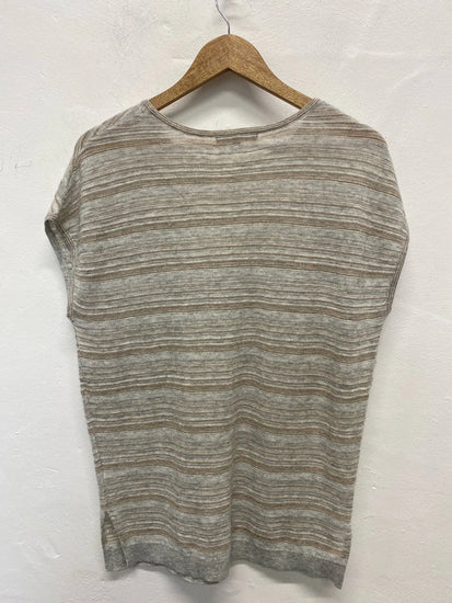 Oliver Bonas Fabulous Taupe & Rose Gold Fine Knit Glitter Stripe Blouse UK 8. A gorgeous top that is perfect for both the casual every day and more formal occasions, like a party! Please note the top is semi sheer.