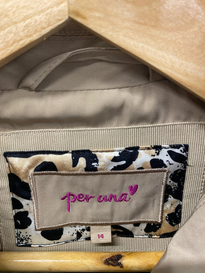 Per Una Chic Beige Trench Coat UK 14. The perfect coat for the fashion forward stylish woman! Front pockets are faux pockets.