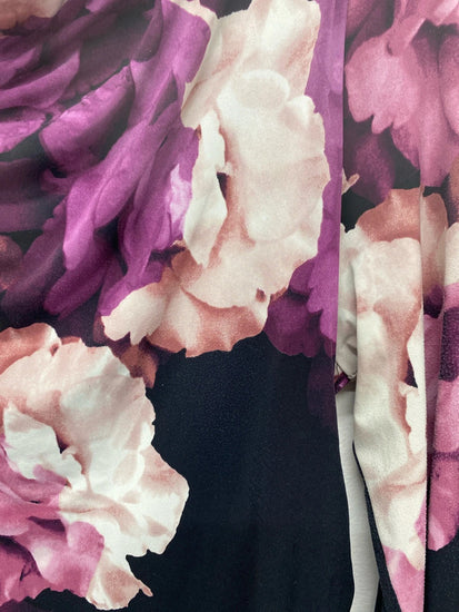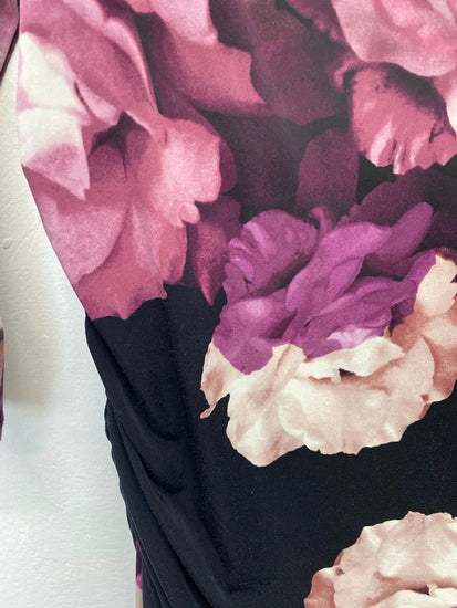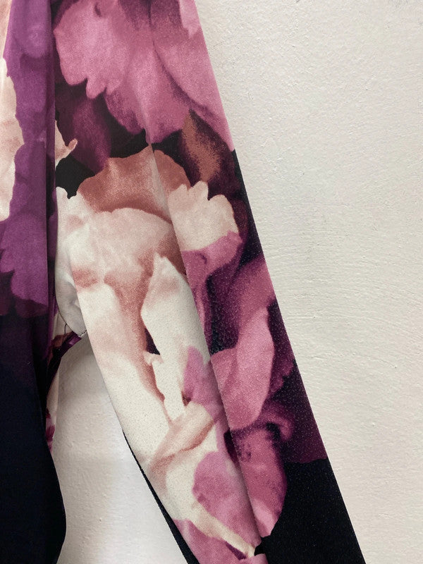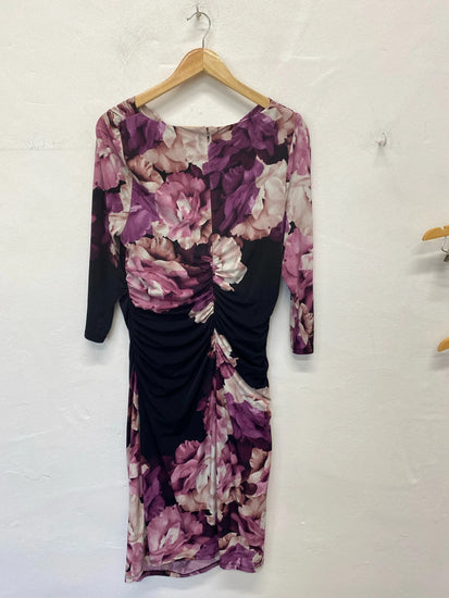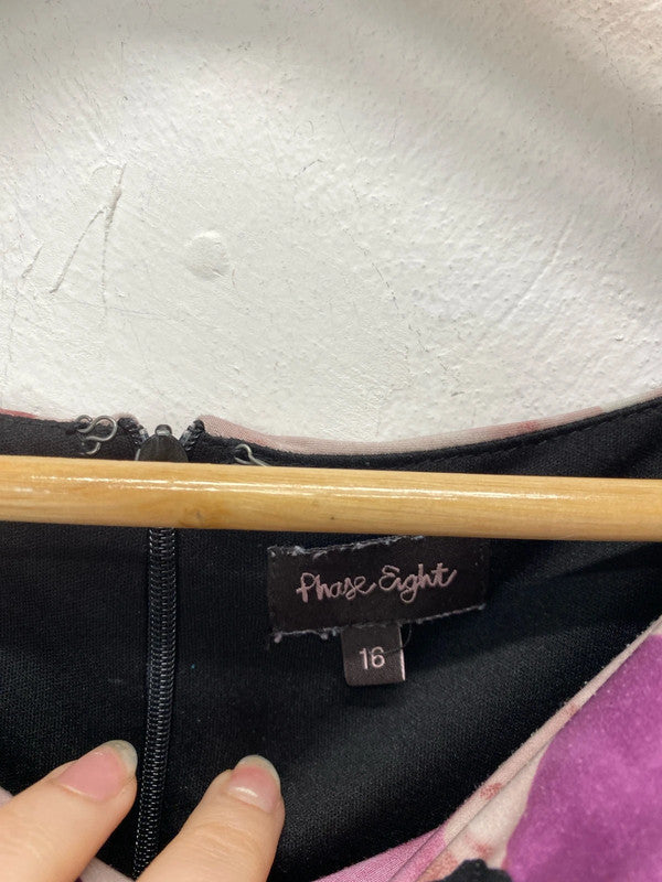 Phase Eight Gorgeous Purple & Black Rose Ruched Midi Dress UK 16. A lovely dress thats perfect for a cocktail party or a boozy brunch with the girls! Please note there is some areas of fabric pilling, see photos.