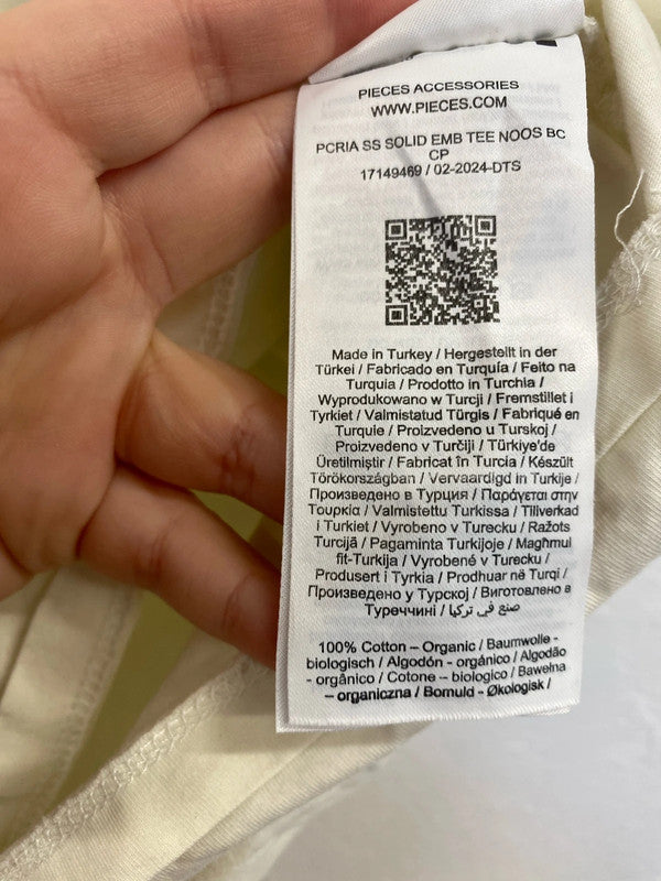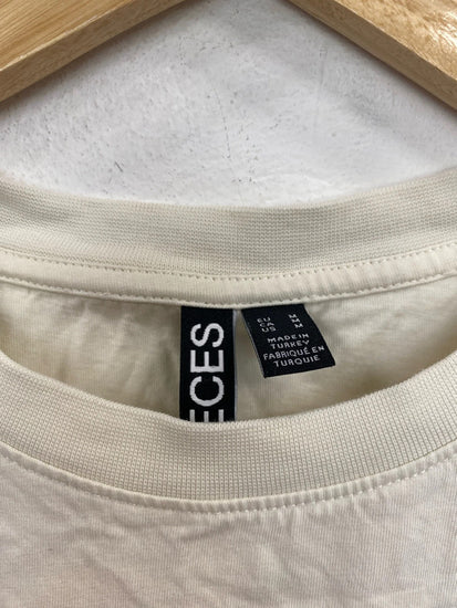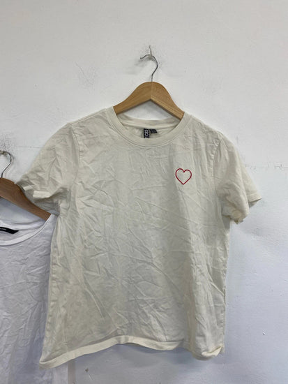 Pieces cream embroidered heart t shirt size M