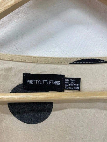Pretty Little Thing Stunning Beige & Black Polka Dot Wrap Dress UK 24. A gorgeous dress that’s perfect for a boozy brunch with the girls, a cocktail party, and more!