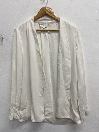 This Reiss white summer jacket in UK size L is a stylish addition to any wardrobe. The short blazer length and basic jacket style make it perfect for layering in autumn or summer. Made for women, it is designed for all seasons and features a classic white colour that can easily be paired with different outfits. With a regular size fit, this versatile piece from Reiss is a must-have for those looking for a chic and timeless outerwear option.