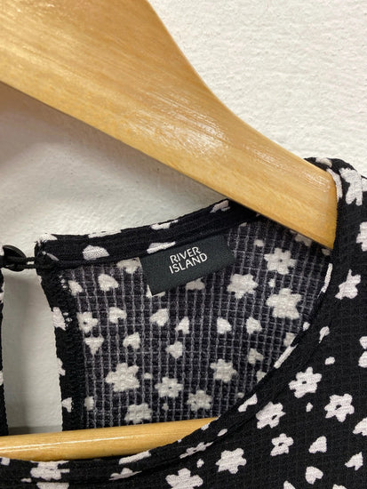 River Island Stylish Black & White Ditsy Floral Asymmetric Ruffle Mini Dress UK 8. A super cute and chic dress that would be perfect for a boozy brunch or afternoon tea with the girls! Please note inside tags have been removed.