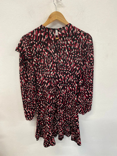 River Island Stylish Burgundy Leopard Print Asymmetric Mini Dress UK 8. The perfect dress for the fashion forward and trendy woman. Show off your wild side! Please note inside tags have been removed.