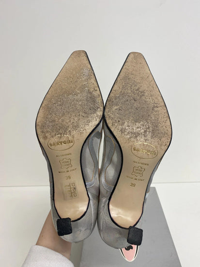 Saatchi Glamorous Silver Iridescent Mesh Heels UK 6. Add some glitz to your wardrobe with these fabulous heels and you’ll be sure to make a statement at any event or party! Please note the shoes have some small marks, see photos.