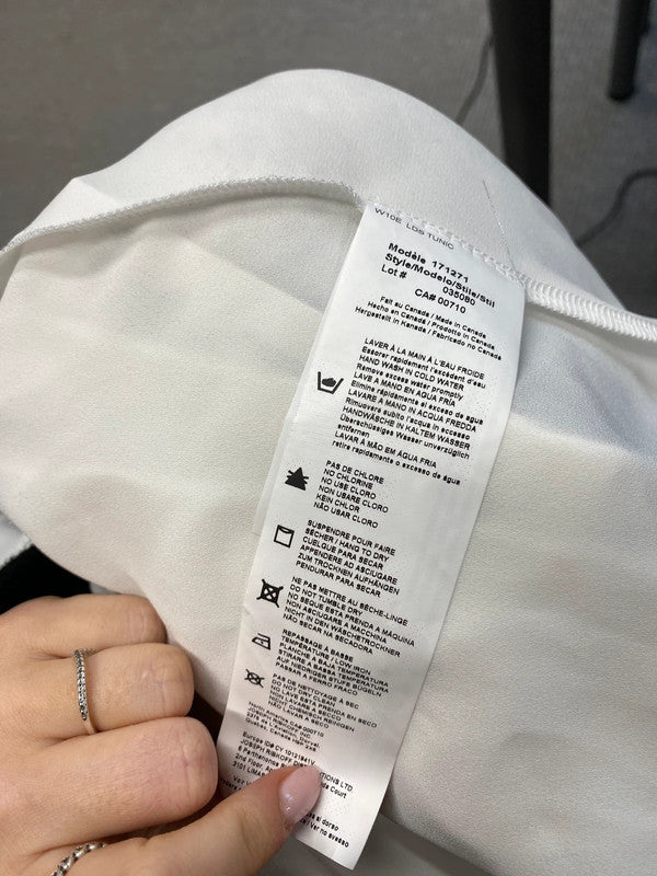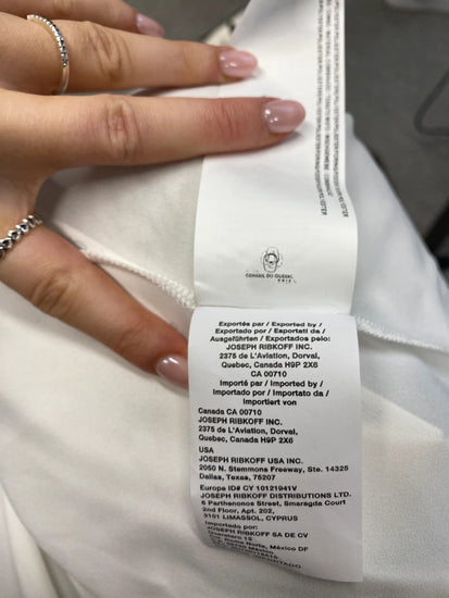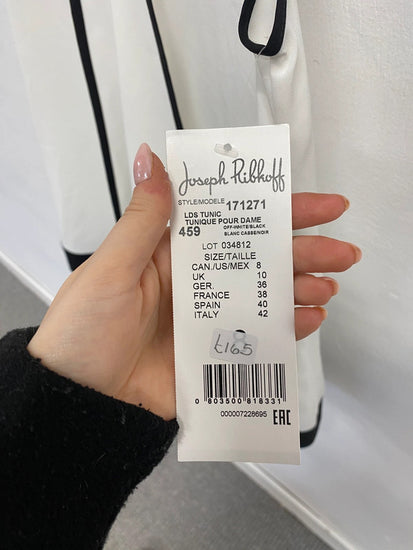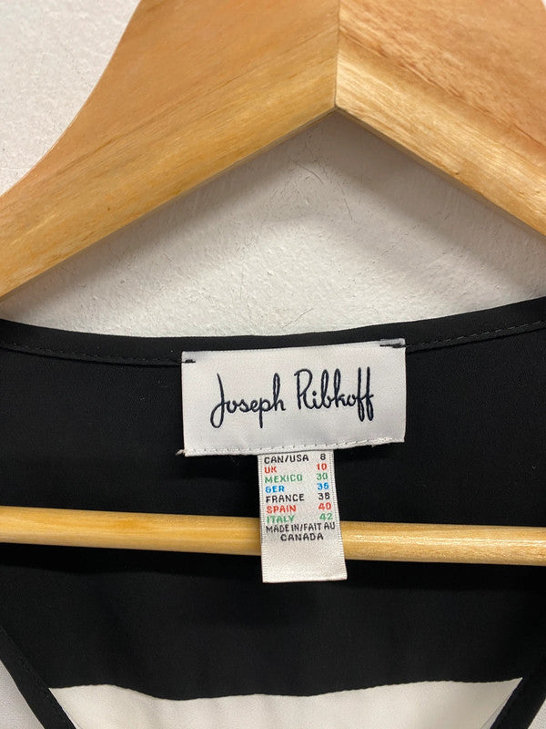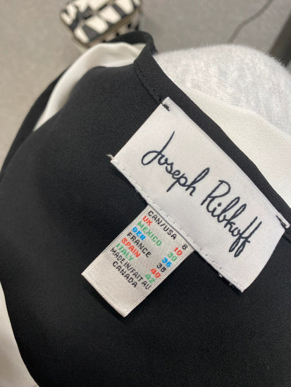 This stunning Joseph Ribkoff tunic features a black and white floral pattern with a sleeveless design and a flattering V-neckline. Made in Canada, this designer piece is perfect for travel or casual wear. The tunic is a size 10 with a regular fit and is crafted with stretchy fabric for comfort. With non-crease properties, this longline tunic is ideal for Autumn, Winter, and Spring seasons, making it a versatile addition to any wardrobe.