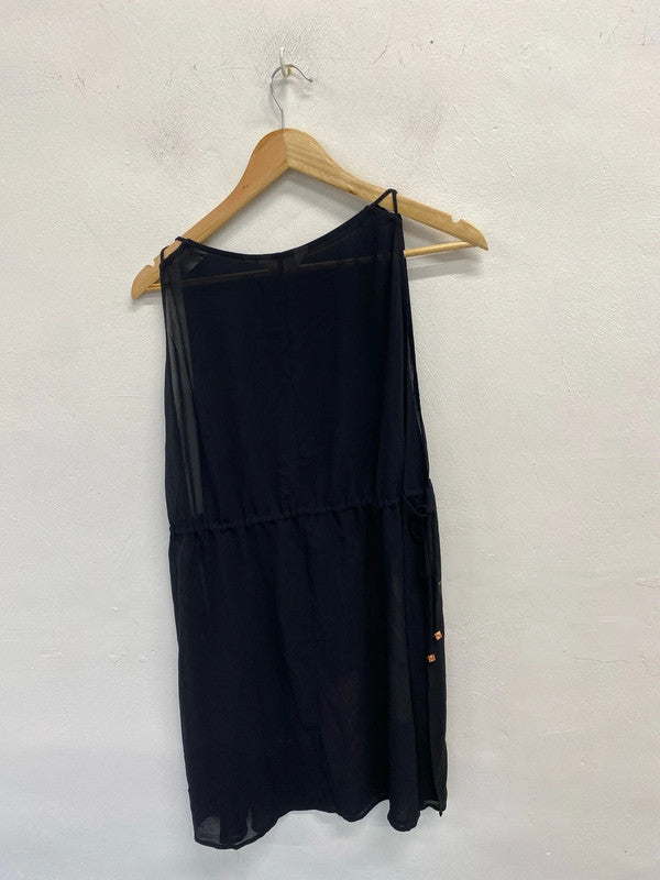This stunning Ted Baker Velrano Floral Beach Cover Up Kaftan in size S is perfect for a day at the beach. The black kaftan features a beautiful floral pattern, making it a stylish and feminine choice for covering up over swimwear. Made for women, this regular size cover up has a beach theme, adding a touch of elegance to your beachwear ensemble.