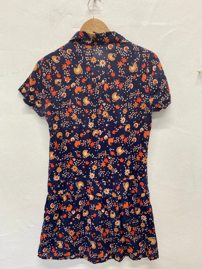 Topshop Fabulous Navy Botanical Pattern Shirt Dress UK 12. This is a beautiful little dress that’s perfect for those days when you want to elevate your casual looks. Please not dress is semi sheer. See photos.